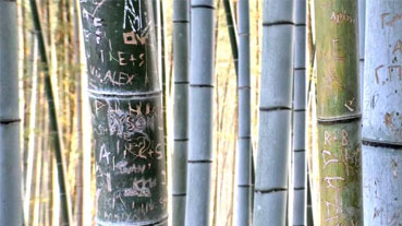 竹の落書きは皮を剥いて消しますよって。