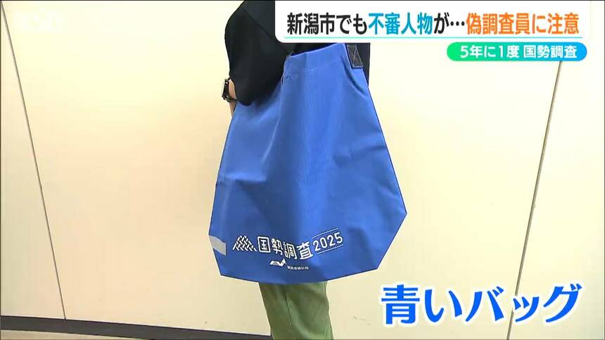本物の調査員かどうかを見分けるポイントは、調査員が持つ専用の“青いバッグ”と“調査員証”です。調査員証には、顔写真・名前・番号が記載されているということです。
